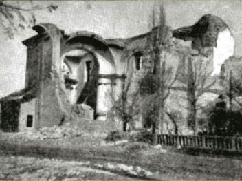 A gazdagon felszerelt templomot a német katonaság 1944-ben felrobbantotta.