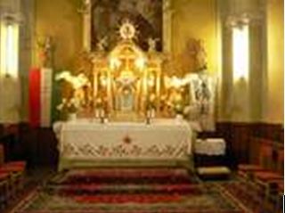 A torony alja oldalfalaiban egy-egy árkádos ülőfülke van, fönt a boltozat csehsüveg típusú. A kórusalja háromszakaszos es keresztboltozatokkal fedett. A főoltár fából készült részben fehérre festett, részben aranyozott. Körülötte, illetve fölötte nyolc szabad oszlopon baldachin, fönn két oldalt térdelő bájos rokokó angyalkák. A főoltáron, két darab szögletes, csigás lábon álló leveles díszű, aranyozott, fából készült gyertyatartó van, amely a XVIII. század második feléből származik. Az oltáron lévő kánon táblakeret szintén a fenti időszakból való. A szentélyfal egyenes záródású síkján, főoltárkép két oldalán, Szent Vendel és Szent Rozália színes rokokó szobrai a XVIII. századból A főoltár képe a szentély hátfalán függ.