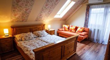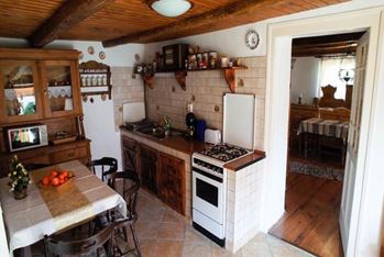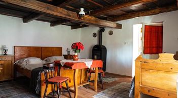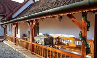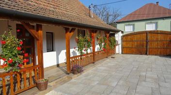 A vendégház barátságos, virággal borított tornác. A régi berendezésű ódon parasztházat, kisgyermekes családok szokták lefoglalni.