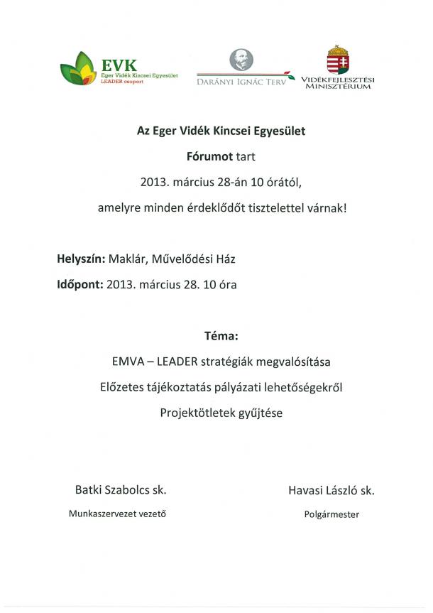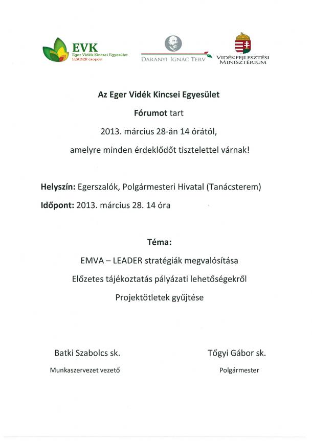 Ezúton tisztelettel tájékoztatjuk az Érdeklődőket, hogy a Magyar Közlöny 79. számában megjelent a Helyi Vidékfejlesztési Stratégiák LEADER fejezetének végrehajtásához 2013-ban nyújtandó támogatások részletes feltételeiről szóló 35/2013. (V. 22.) VM rendelet.
